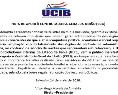União das Controladorias Internas do Estado da Bahia manifesta apoio à Controladoria-Geral da União (CGU)