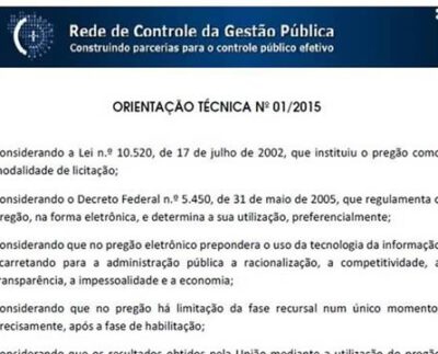 ORIENTAÇÃO TÉCNICA Nº 01/2015 da Rede de Controle da Gestão Pública